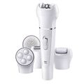 Έρχεται με πολλά εξαρτήματα για ανώδυνη και αποτελεσματική αποτρίχωση, αφαιρεί τους κάλους, απολεπίζει το ξηρό δέρμα, καθαρίζει το πρόσωπό σας, κάνει μασάζ για μυϊκούς πόνους και την καλή κυκλοφορία του αίματος.