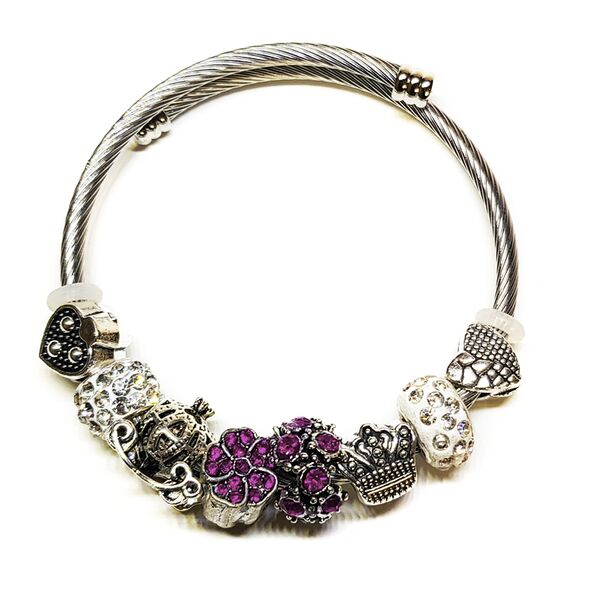Γυναικείο Βραχιόλι Τύπου Pandora με Διάφορα Γούρια - Crown Purple
