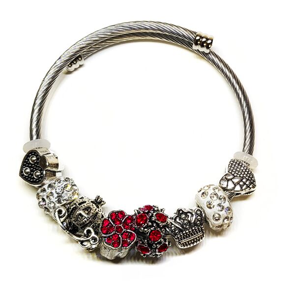 Γυναικείο Βραχιόλι Τύπου Pandora με Διάφορα Γούρια - Crown Red