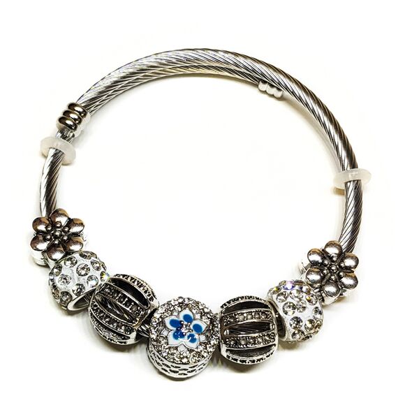 Γυναικείο Βραχιόλι Τύπου Pandora με Διάφορα Γούρια - Flower Blue