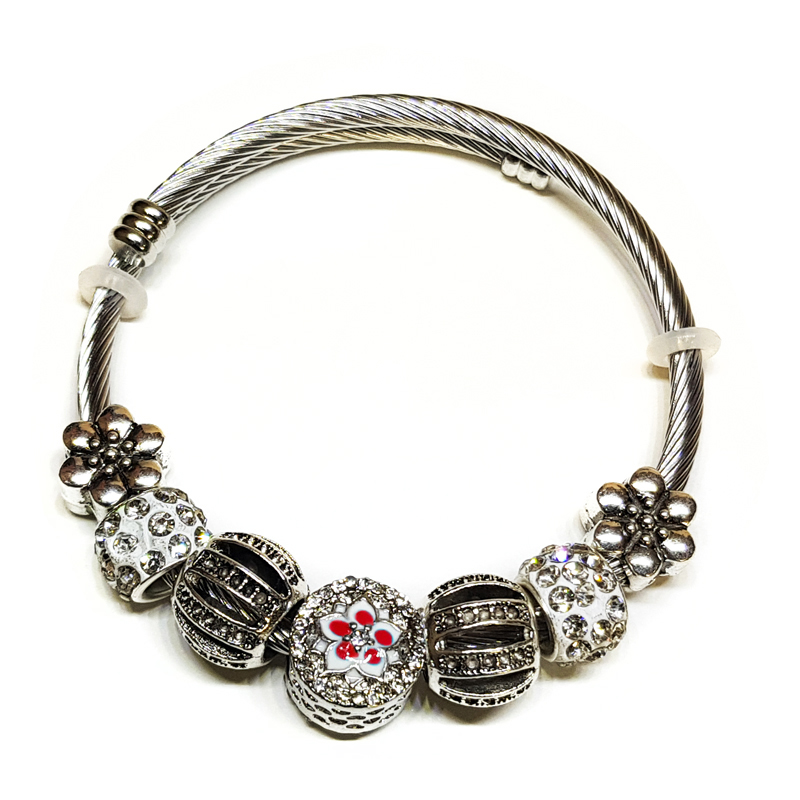 Γυναικείο Βραχιόλι Τύπου Pandora με Διάφορα Γούρια - Flower Red
