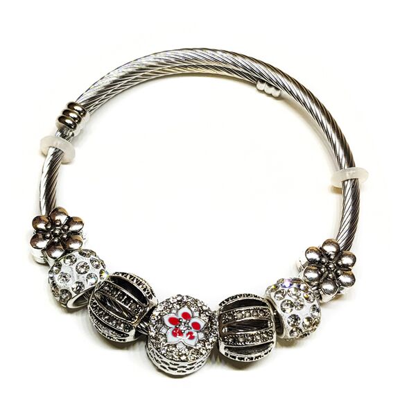 Γυναικείο Βραχιόλι με Διάφορα Charms Flower Red από ανοξείδωτο ατσάλι Stainless Steel.