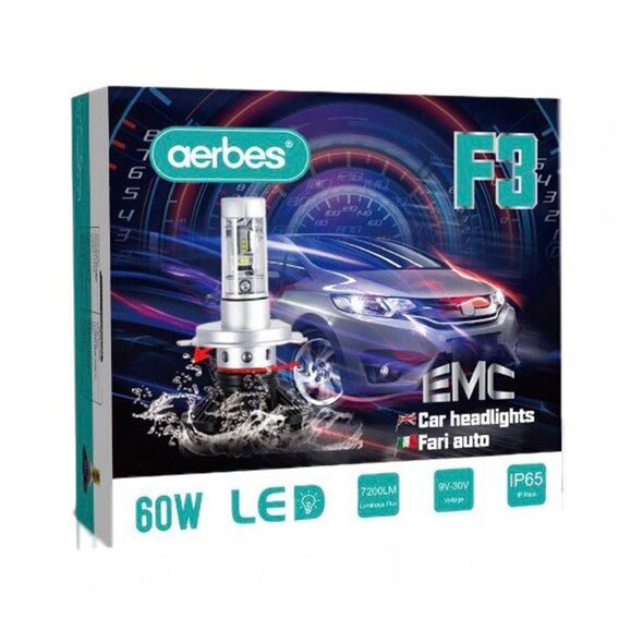 H7 Σετ 2 Τεμάχια Led Λάμπες F3 Αυτοκινήτου 60W 7200lm με Δέσμη 360° και Αδιάβροχη Προστασία IP65 - Led Headlight