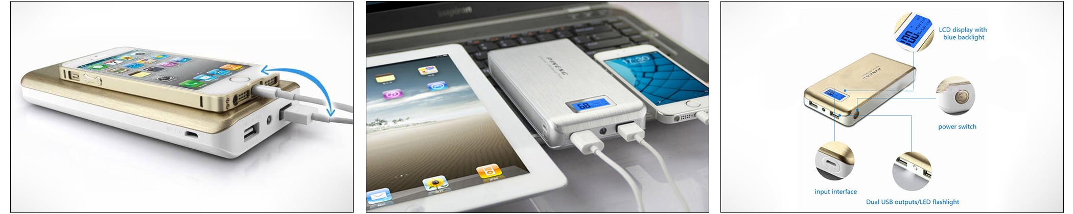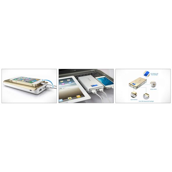 Power bank - φορητή ενέργεια - μπαταρία λιθίου 15.000mAh* φορτίζει κινητά - gps - camera - PSP - Mp3-Mp4 player κλπ. Φορτίζει και Tablet, iPad και άλλες μεγάλες συσκευές λόγω της ισχυρής εξόδου 2,1Α .
