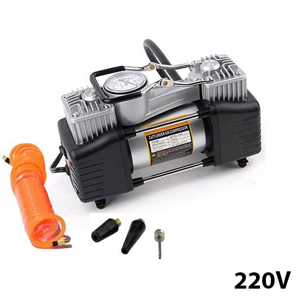 HeavyDuty Δικύλινδρο Κομπρεσέρ Τρόμπα Αέρος Πρίζας 220V Υψηλής Απόδοσης 220W με Θήκη Μεταφοράς