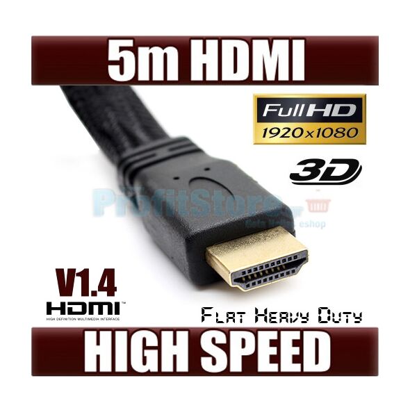 High Speed HDMI 1.4 3D Cable with Ethernet - 5m Flat Heavy Duty - FullHD 1080p Gold Plated