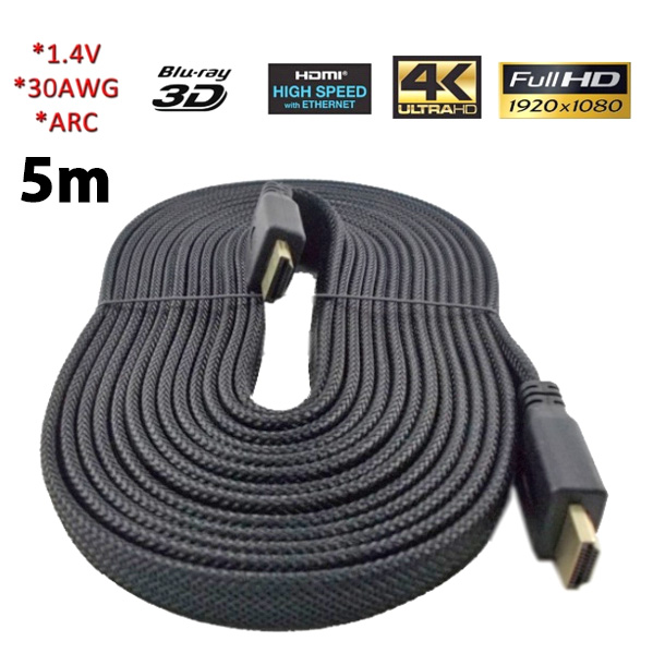 High Speed HDMI 1.4 3D καλώδιο με Ethernet - 5m Flat Heavy Duty - 1080p Full HD Gold Plated