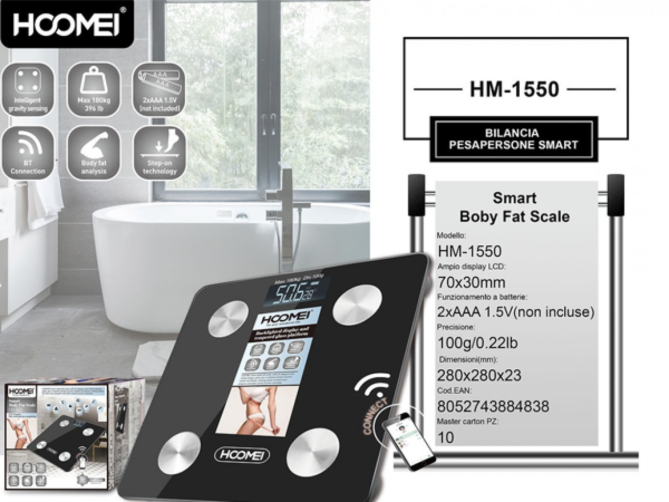 - 1 x Hoomei® Έξυπνη Ψηφιακή Ζυγαριά