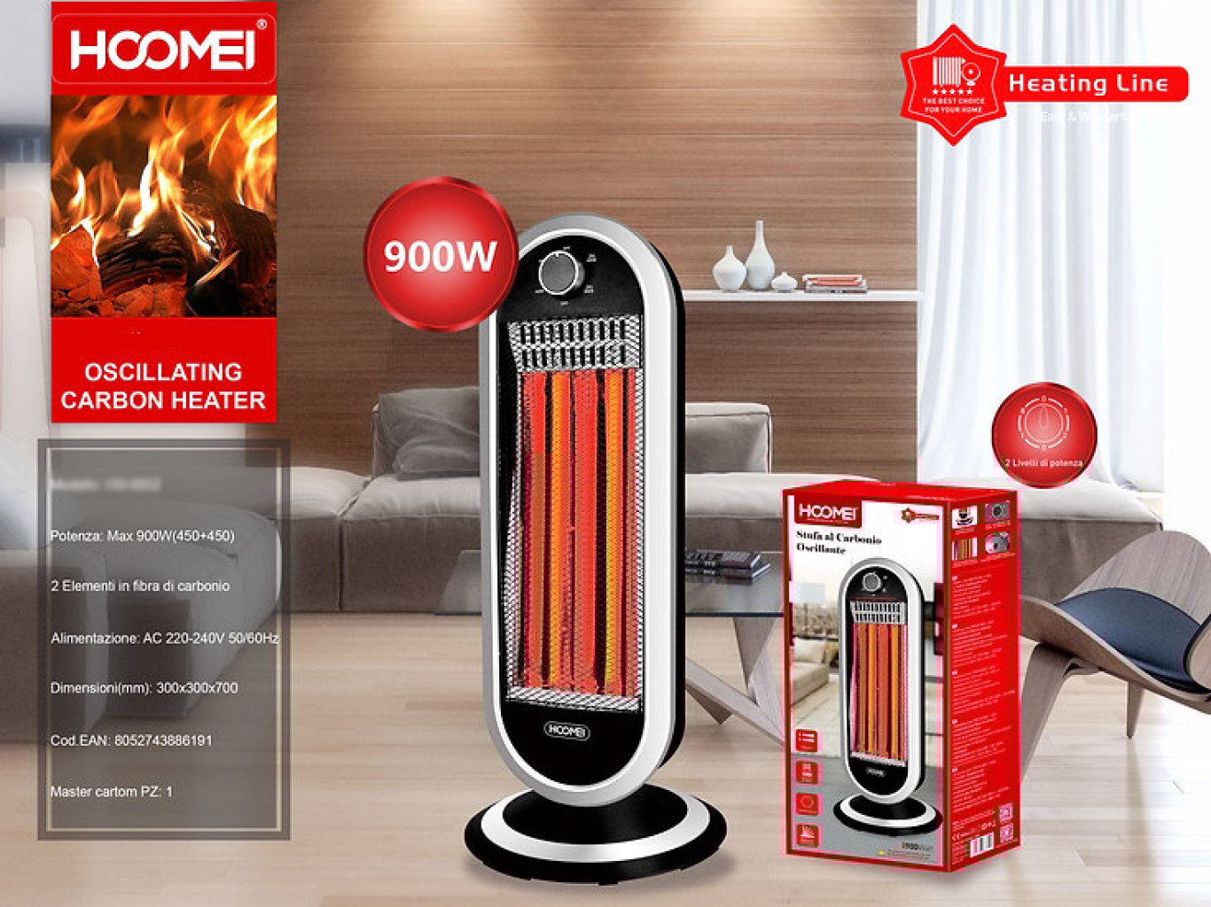 Καινοτόμα σόμπα - θερμαντικό σώμα ταλαντούμενου άνθρακα 900W, με την εγγύηση ποιότητας της Hoomei!