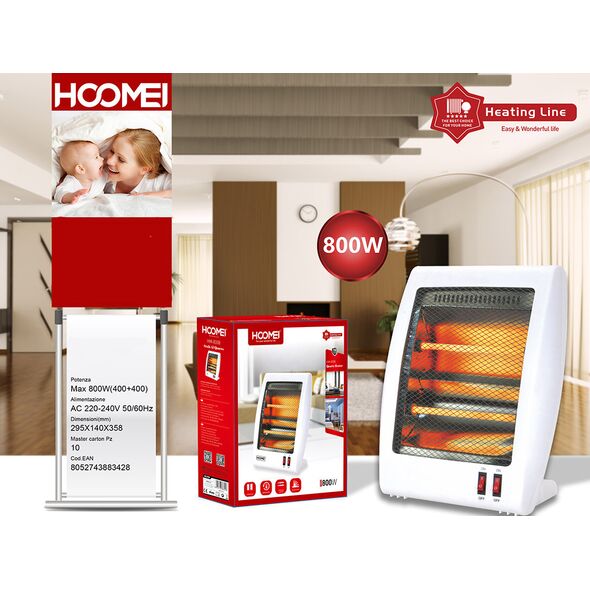 - 1 x Hoomei Επιδαπέδια Σόμπα Χαλαζία Θερμαντικό Σώμα 800W με Πλέγμα Ασφαλείας & 2 Ρυθμίσεις Θέρμανσης - Λευκή