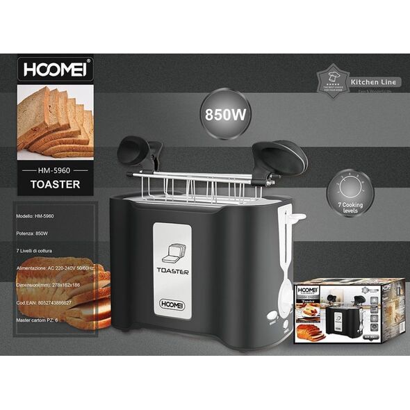Hoomei® Φρυγανιέρα 850W με 2 Θέσεις & 7 Επίπεδα Ψησίματος HM-5960 Μαύρη