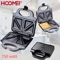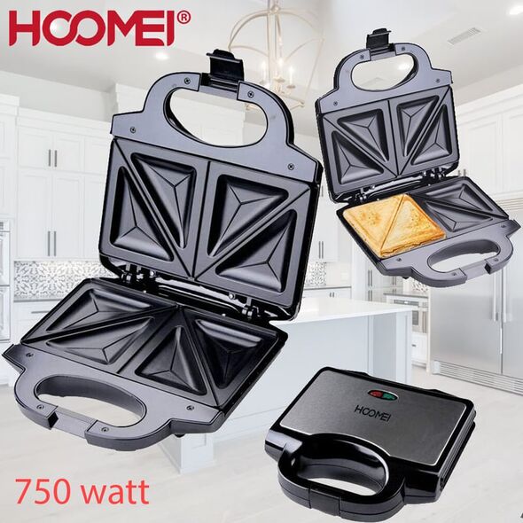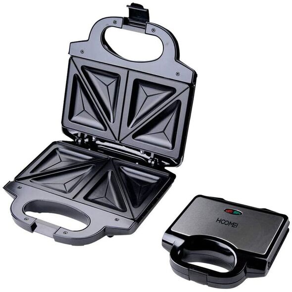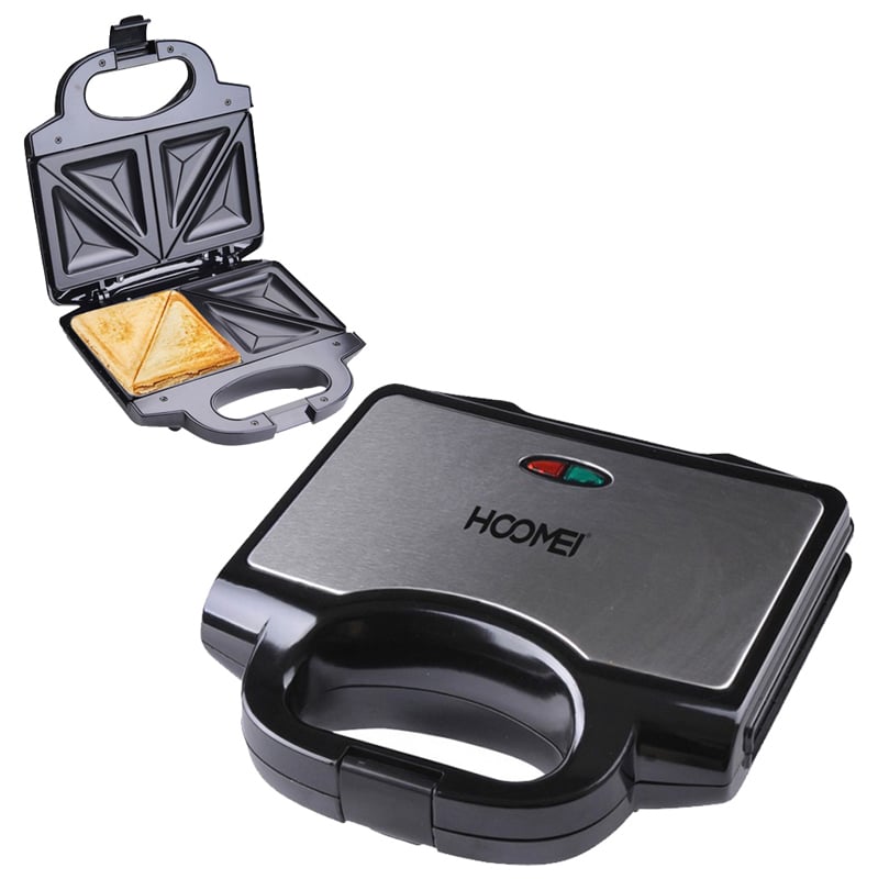 Hoomei® Ηλεκτρική Τοστιέρα 750 W, με Αντικολλητικές Πλάκες με Σχήμα για Εύκολο Κόψιμο, Αυτόματο Θερμοστάτη & Αντικραδασμική Βάση, για 2 Τοστ