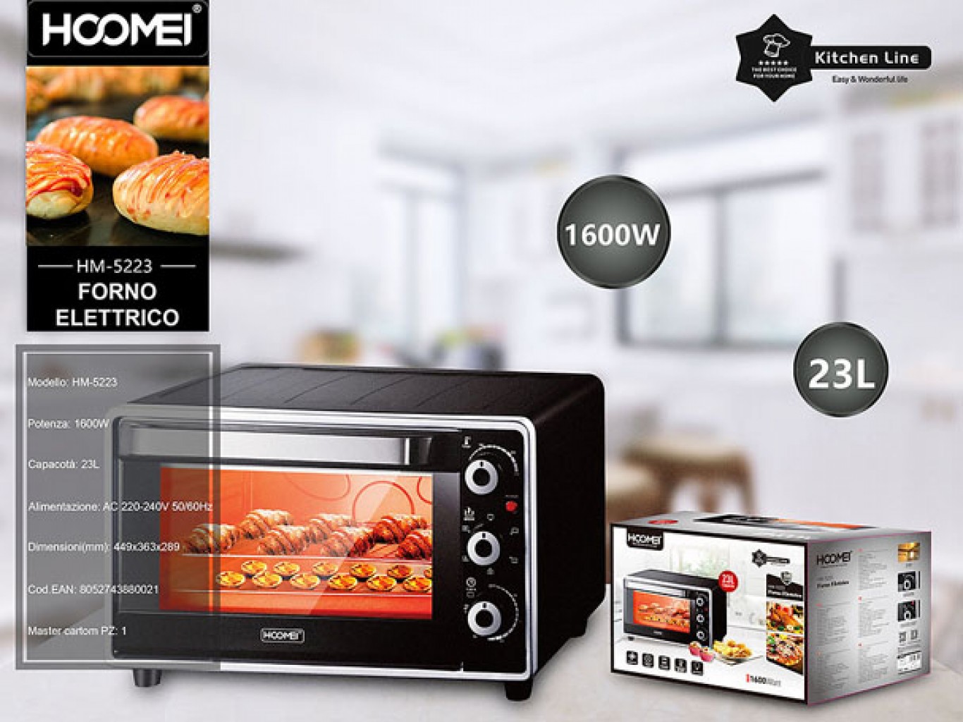 - 1 x Hoomei® Ηλεκτρικό Φουρνάκι 1600W 23lt