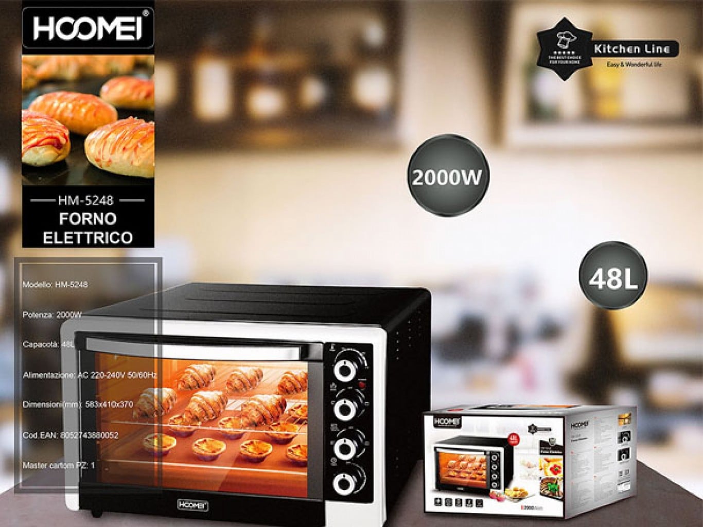 - 1 x Hoomei® Ηλεκτρικό Φουρνάκι 2000W 48lt