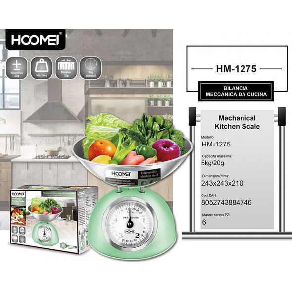 Hoomei® Ρετρό Αναλογική Ζυγαριά Κουζίνας 20g - 5kg με Βαθύ Κάδο ΗΜ-1275
