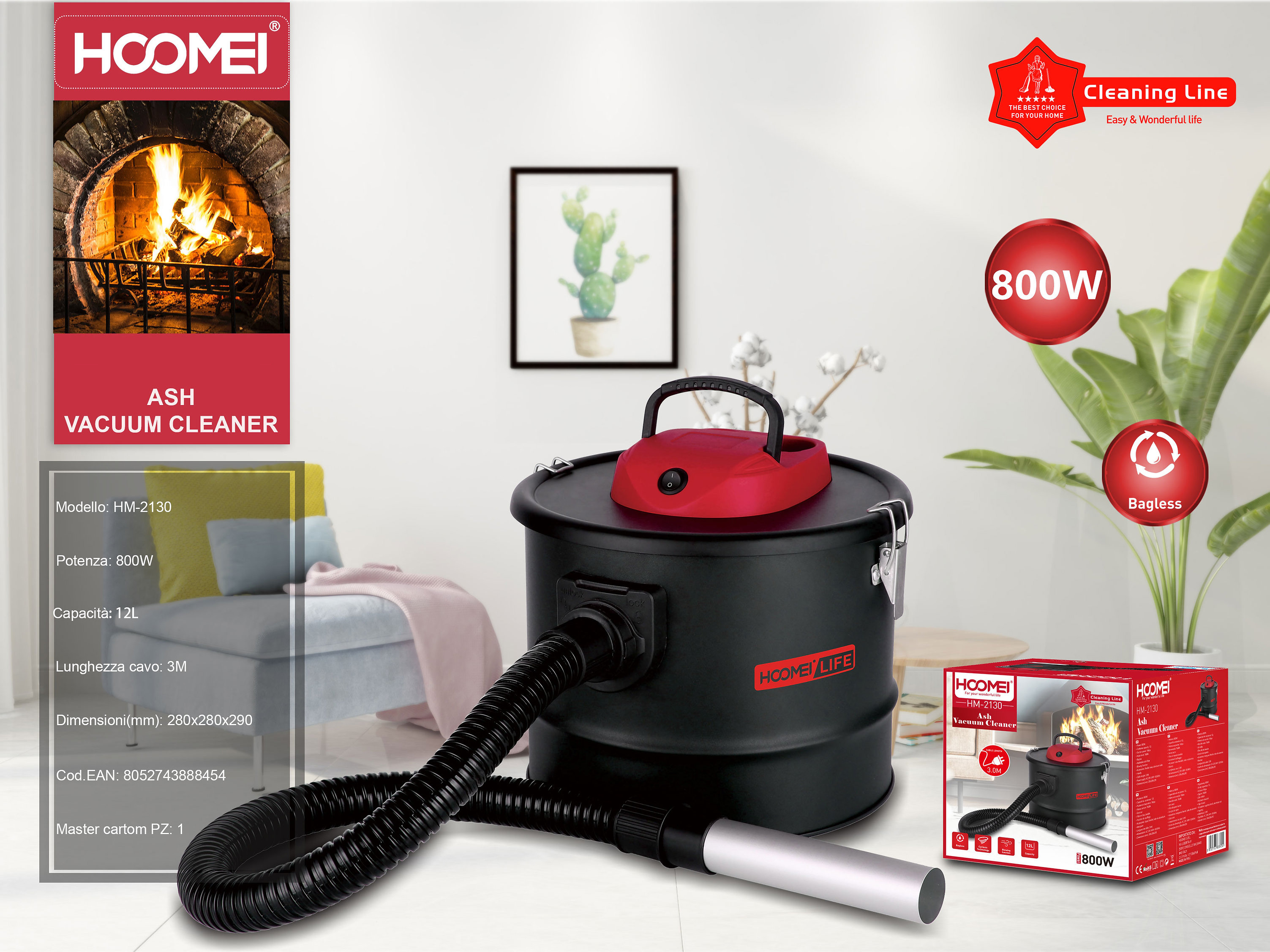 - 1 x Hoomei Σκούπα 800W Ιδανική για Στάχτη με Ανοξείδωτο Κάδο 12L