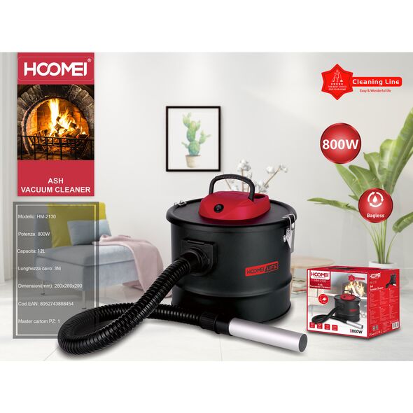 Hoomei Σκούπα 800W Ιδανική για Στάχτη με Ανοξείδωτο Κάδο 12L