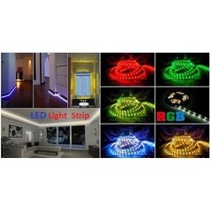 Πλήρες Σετ 5 μέτρων LED RGB Αδιάβροχης Αυτοκόλητης Ταινίας SMD 3,6W/m 12V Super Bright με τροφοδοτικό, controller και τηλεκοντρόλ. Είναι εύκαμπτη και μπορεί να κοπεί ανά 9 led η 15 εκατοστά. Με αυτοκόλλητη ταινία της 3Μ για εύκολη τοποθέτηση