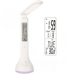 Επιτραπέζιο φωτιστικό για το γραφείο σας με οθόνη, θερμόμετρο, ρολόι, ξυπνητήρι, ημερολόγιο το οποίο θα δημιουργήσει μια ευχάριστη ατμόσφαιρα χάρις στον πολύχρωμο RGB φωτισμό. Διαθέτει ενσωματωμένη επαναφορτιζόμενη μπαταρία λιθίου, LED chips για χαμηλή κατανάλωση & σταθερό φωτισμό που δεν τρεμοπαίζει.