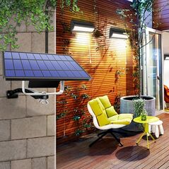 Επιτοίχιο/ επιδαπέδιο ηλιακό φωτιστικό που συγκεντρώνει και αποθηκεύει ηλιακή ενέργεια για τη λειτουργία του, ώστε να μη χρειάζεται να συνδεθεί σε παροχή ρεύματος. Με ανιχνευτή κίνησης για να ενεργοποιείται όταν εντοπίσει κίνηση εντός της εμβέλειάς του, αλλά και τηλχειριστήριο ώστε να το χειρίζεστε από απόσταση.
