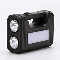 Σύστημα Φωτισμού τριών λαμπτήρων LED για το σπίτι ή για Κάμπινγκ, με ενσωματωμένο ηχείο Bluetooth, Fm δέκτη για ράδιο, σε πρακτικό σχήμα φαναριού δύο πυρσών. Λειτουργεί και ως φορτιστής φορητών συσκευών.
