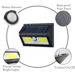 Αυτό το αδιάβροχο ηλιακό επιτοίχιο φωτιστικό με φωτοκύτταρο είναι ένα πρακτικό, δυνατό φως με 2 μεγάλα COB LED ~350 Lumens εξωτερικού χώρου το οποίο δεν καταναλώνει ρεύμα αφού λειτουργεί με ηλιακή ενέργεια, ενώ παράλληλα παρέχει τον απαραίτητο φωτισμό στους χώρους που εσείς θα επιλέξετε!