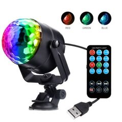 Φωτορυθμικό Led Party Light με Τηλεχειριστήριο και Βάση 3W.Δυνατό LED Effect Φωτορυθμικό Disco Party Crystal Ball – Stage Light . Διαθέτει τηλεκοντρόλ, βάση τοίχου, βάση επιτραπέζια με βεντούζα,τροφοδοσία με USB (μπορεί να πάρει και ρεύμα από την πρίζα με το φορτιστή του τηλεφώνου σας ), καλώδιο USB.