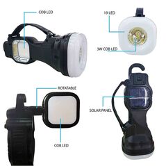 Μεγάλη φωτεινότητα και λειτουργικότητα για κάθε είδους εργασία. Επαναφορτίζει είτε μέσω του ηλιακού πάνελ που διαθέτει είτε μέσω καλωδίου USB. Με 3x λειτουργίες φωτισμού: Φακός με εστιασμένη δέσμη, φωτιστικό διάχυτου φωτισμού με 15 Led. περιστρεφόμενο φωτιστικό COB LED.