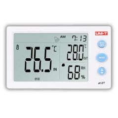 Ψηφιακός επιτραπέζιος μετρητής θερμοκρασίας και υγρασίας UNI-T A10T με LCD οθόνη 4,5”, ρολόι, ξυπνητήρι και ένδειξη μέγιστης/ελάχιστης τιμής. Ιδανικός για το σπίτι, το γραφείο και επαγγελματικούς χώρους.