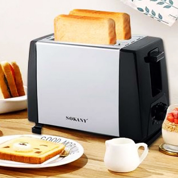 Η ηλεκτρική φρυγανιέρα της εταιρείας Sokany, έχει ισχύ 700 Watt και υποδοχές για 2 φέτες ψωμιού.