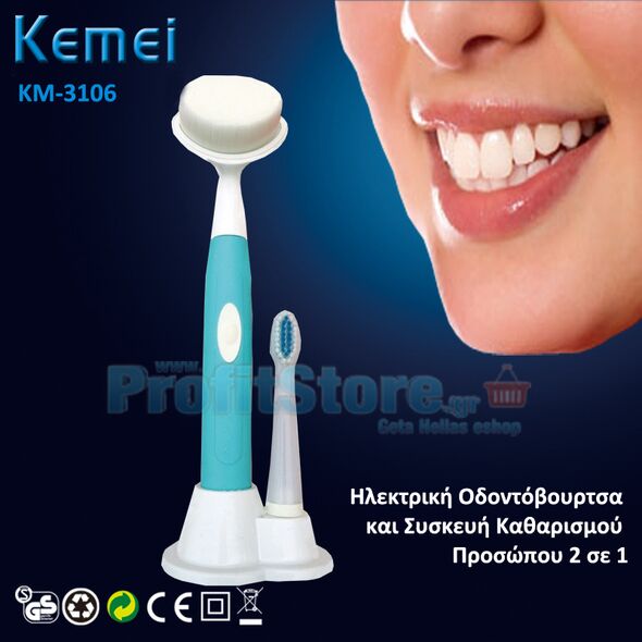 Ηλεκτρική Οδοντόβουρτσα & Συσκευή Καθαρισμού Προσώπου 2 σε 1 KEMEI KM-3106