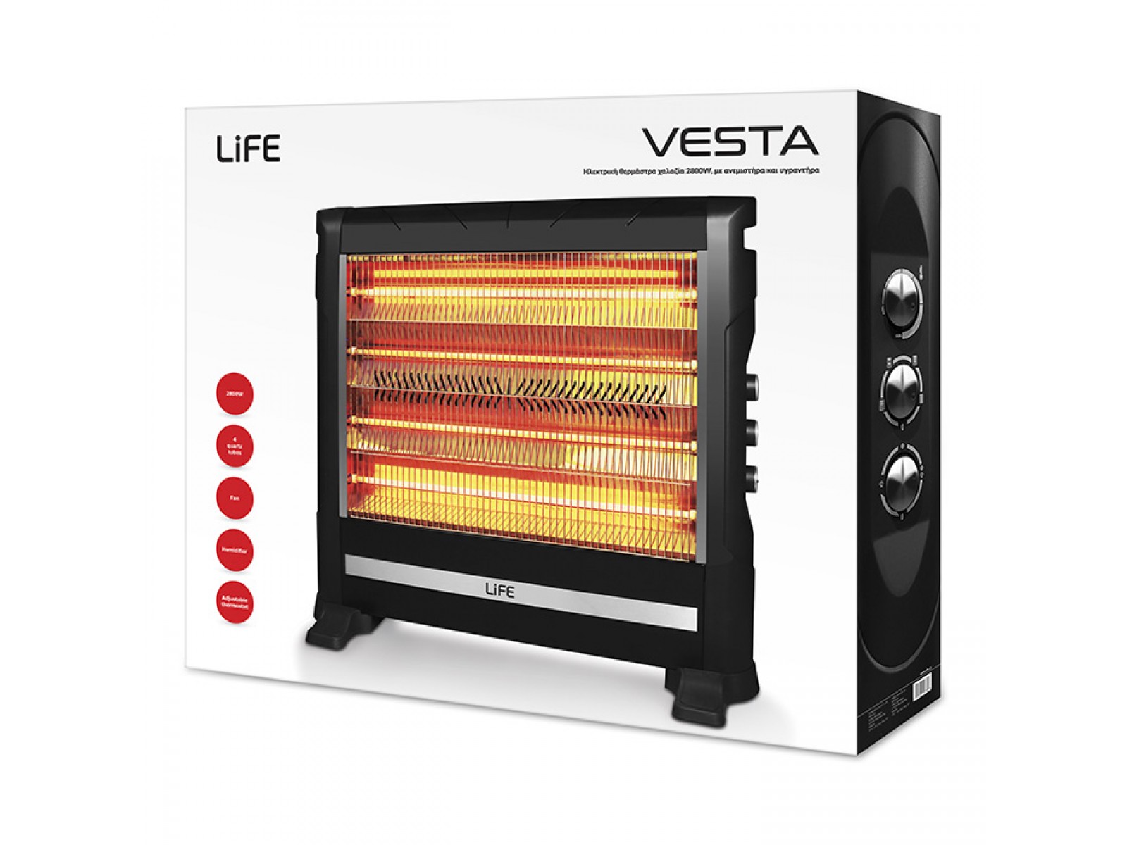 Ηλεκτρική Σόμπα/Θερμάστρα Χαλαζία 2800W με Θερμοστάτη, Ανεμιστήρα και Υγραντήρα Life Vesta