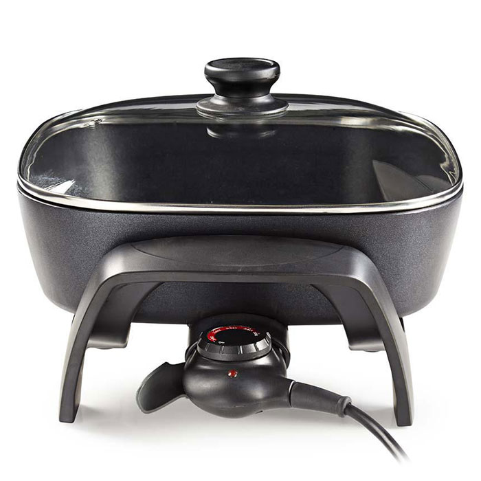 Σε αντίθεση με τις παραδοσιακές εστίες, το ηλεκτρικό αυτό σκεύος μαγειρικής μπορεί να ρυθμιστεί άμεσα σε μια σταθερή θερμοκρασία η οποία προσαρμόζεται εύκολα χάρη στον ρυθμιζόμενο θερμοστάτη. Η κατασκευή του από αλουμίνιο και το ενσωματωμένο θερμαντικό στοιχείο προσφέρουν εξαιρετική κατανομή της θερμότητας σε ολόκληρη την επιφάνεια μαγειρέματος.