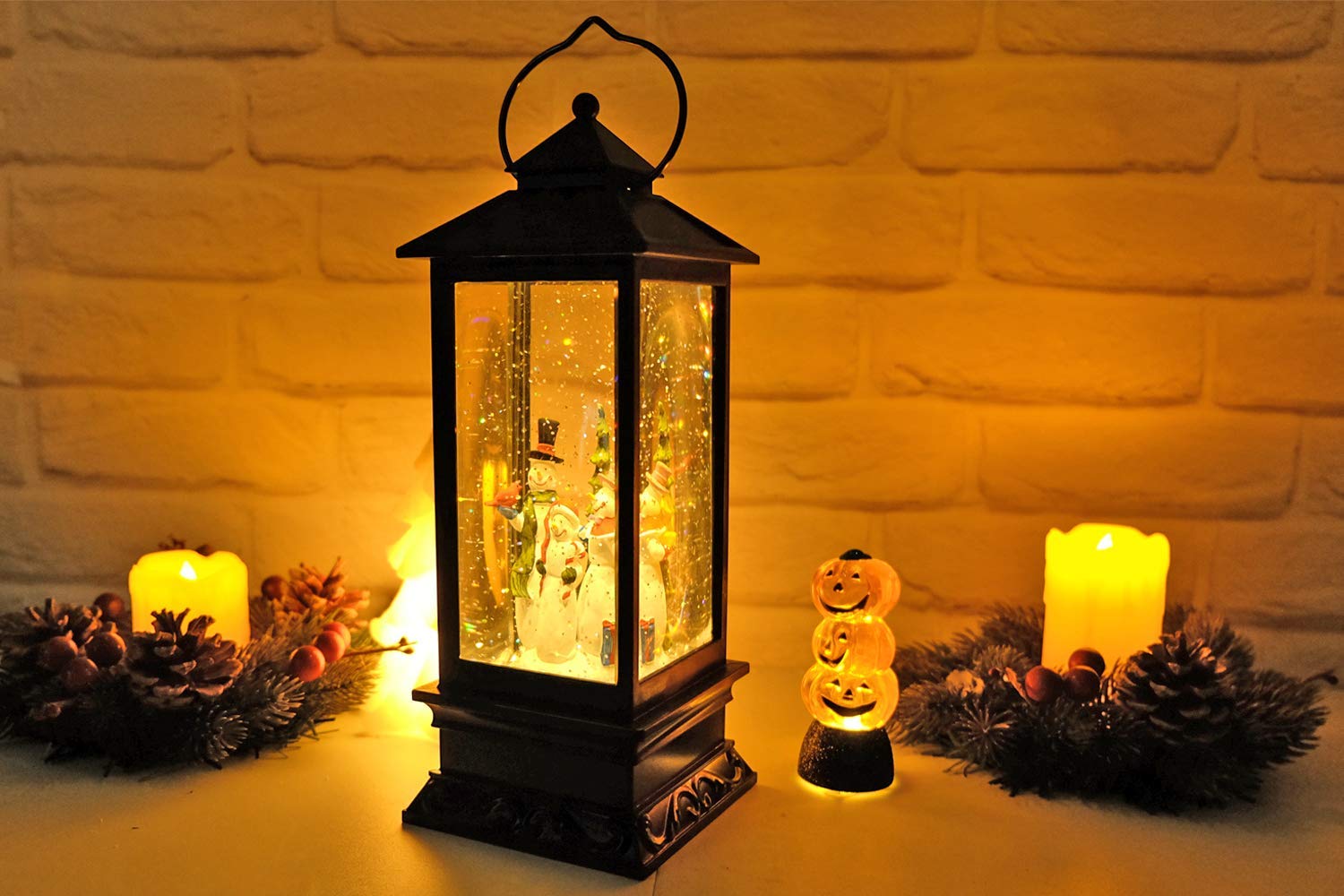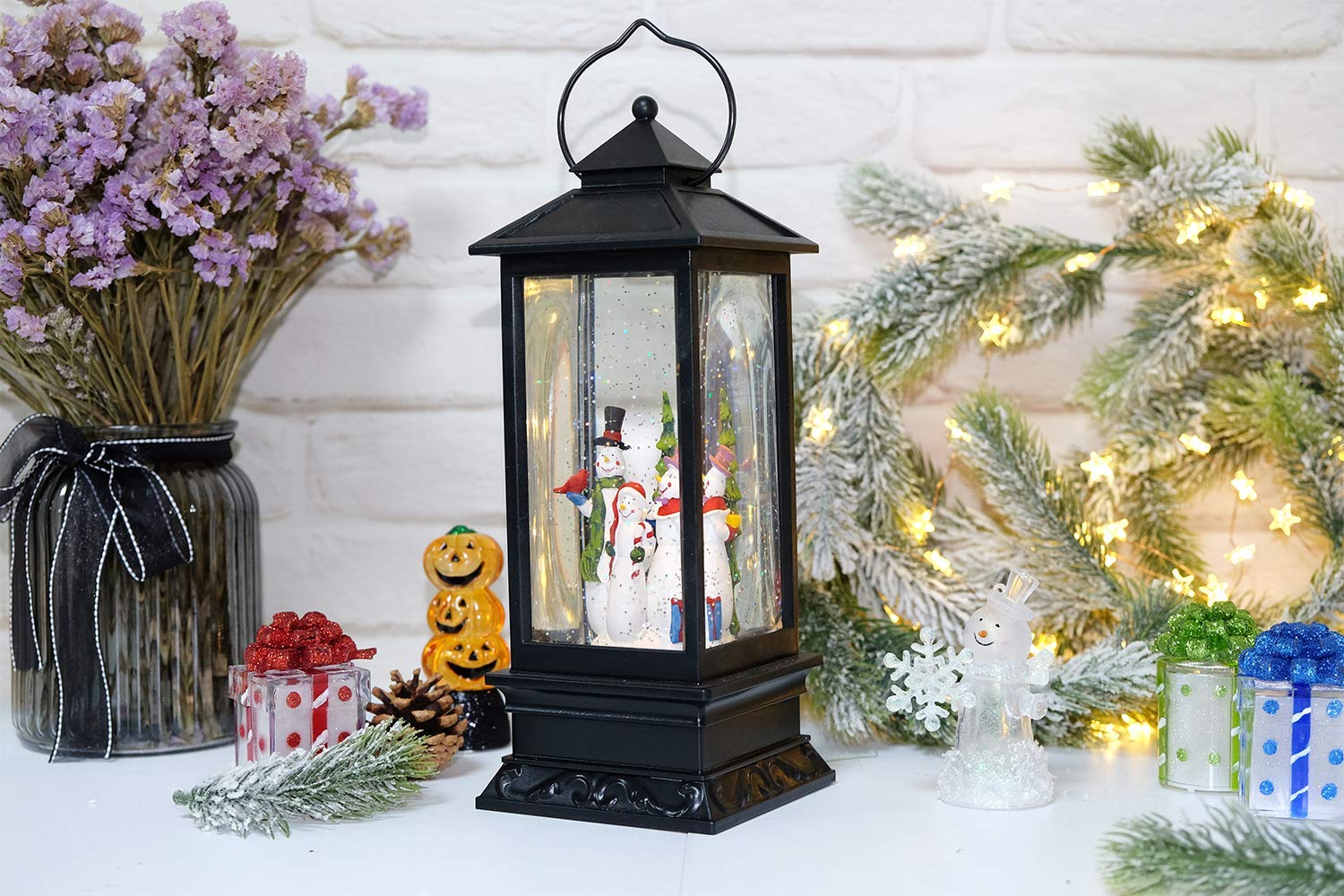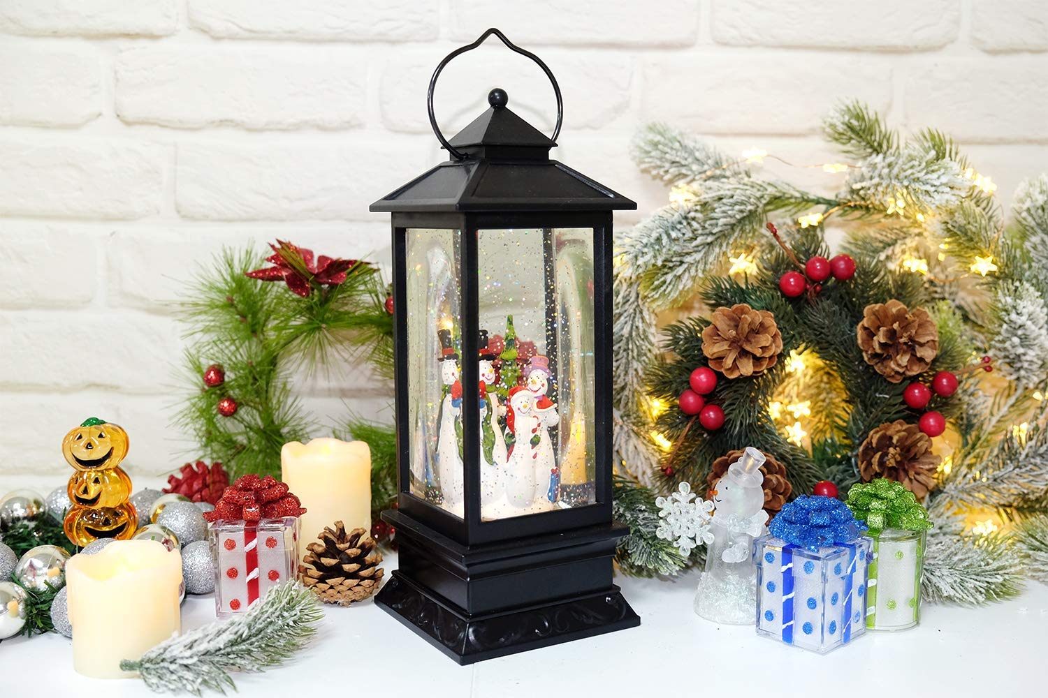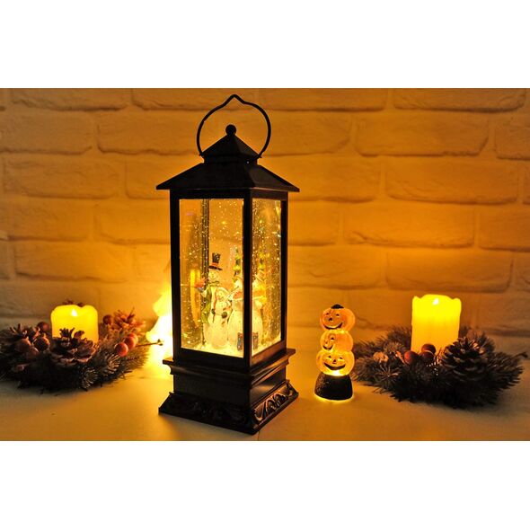 Ηλεκτρικό Χριστουγεννιάτικο Μουσικό Διακοσμητικό Φωτιστικό Φανάρι Χιονόμπαλα USB με Αιωρούμενο Glitter - Χιονάνθρωπος