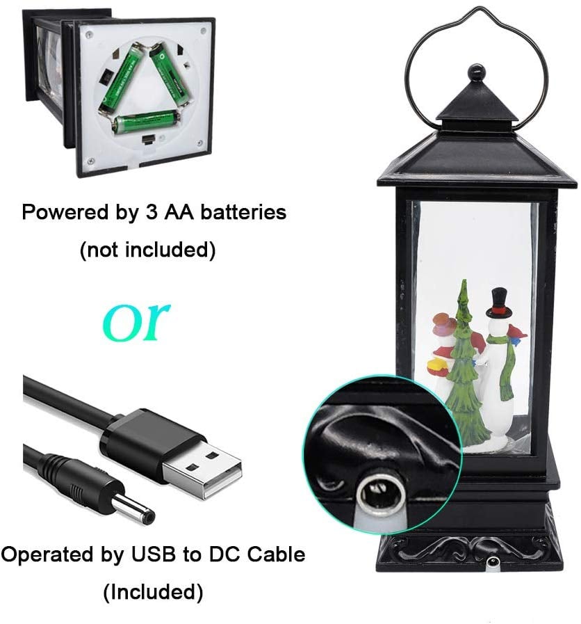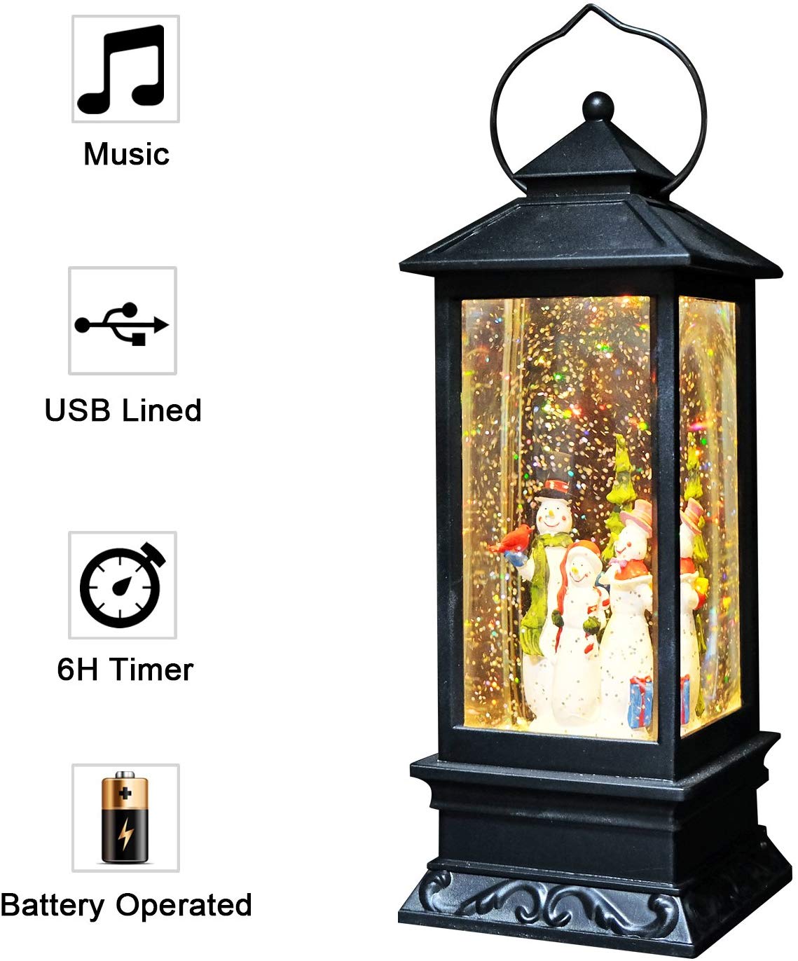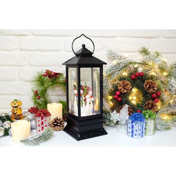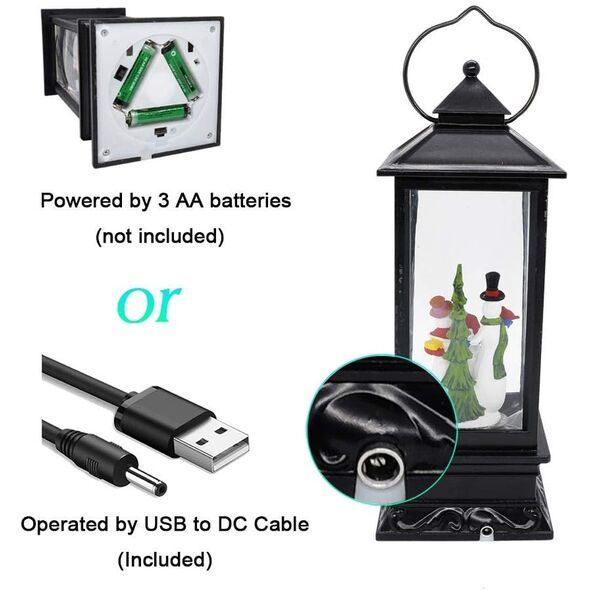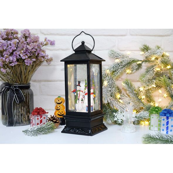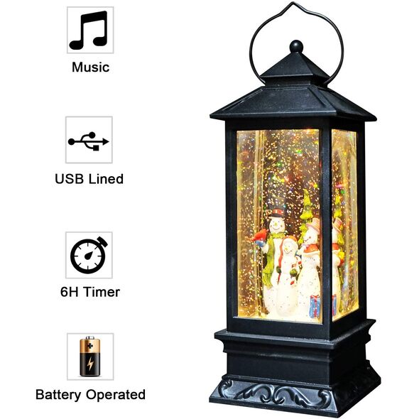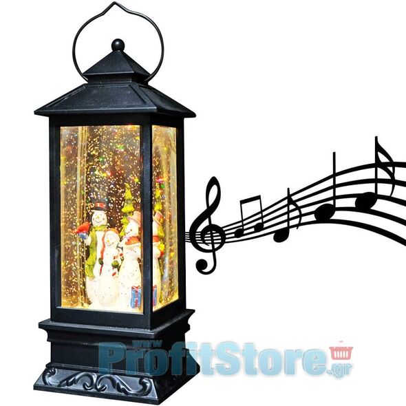 Ηλεκτρικό Χριστουγεννιάτικο Μουσικό Διακοσμητικό Φωτιστικό Φανάρι Χιονόμπαλα USB με Αιωρούμενο Glitter - Χιονάνθρωπος