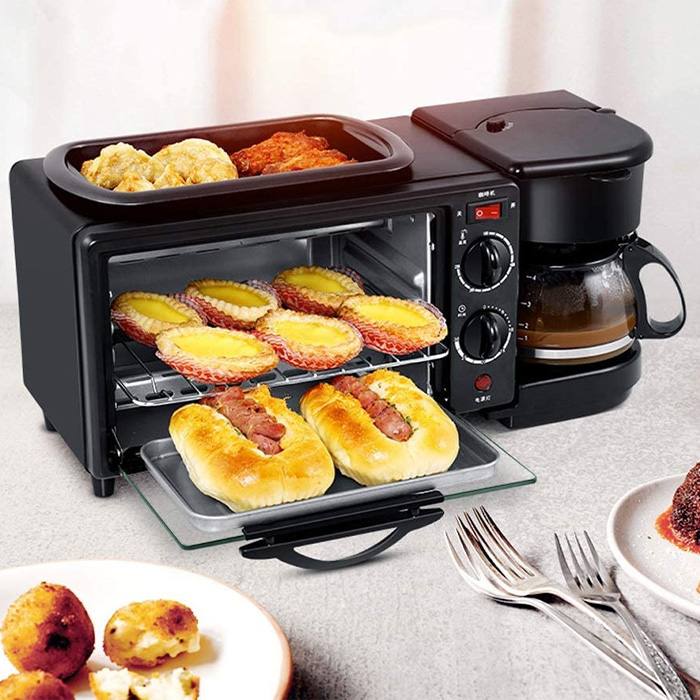 Ηλεκτρικός επιτραπέζιος φούρνος ψησίματος κουζίνας με καφετιέρα και γκριλ τηγάνι με καπάκι 3 σε 1 (μηχανή πρωινού)