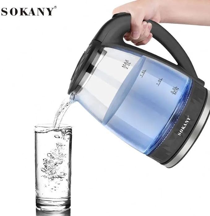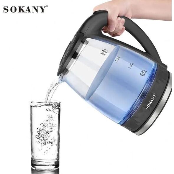 Ηλεκτρικός Βραστήρας 2 Λίτρων 1500W με την υπογραφή της SOKANY για γρήγορο βράσιμο νερού. Κατασκευασμένος από ανθεκτικό γυαλί, όχι μόνο καθαρίζεται εύκολα εξασφαλίζοντας μέγιστη υγιεινή, αλλά προσθέτει και στυλ στον πάγκο της κουζίνας σας.
