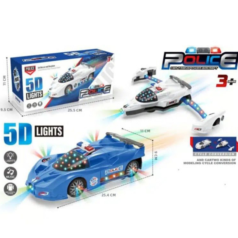 Ηλεκτροκίνητο Αυτοκινητάκι – Περιπολικό που Μεταμορφώνεται σε Μαχητικό Αεροσκάφος με Μουσική – Μπλε