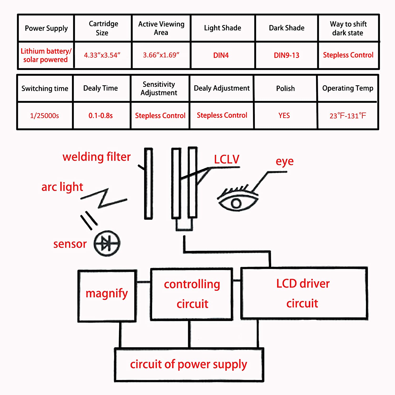 • Το αυτόματο φίλτρο σκίασης διαθέτει ροοστάτες για την καθυστέρηση (delay) και για την ευαισθησία φωτός (sensitivity) αλλά και ροοστάτη για το ποσοστό επισκίασης (έως και απόλυτο σκοτάδι)