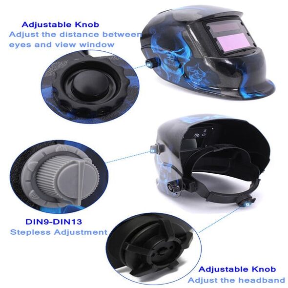 Ηλεκτρονική Μάσκα - Κράνος Ηλεκτροσυγκόλλησης Αυτόματης Σκίασης με Ηλιακό Πάνελ - Μπλε Νεκροκεφαλή
