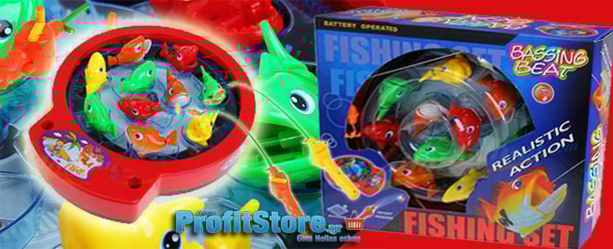 Εντυπωσιακό παιχνίδι ψαρέματος με 10 ψαράκια που κινούν τις ουρές τους, ανοιγοκλείνουν το στόμα ενώ περιστρέφονται και παίζουν μουσική.