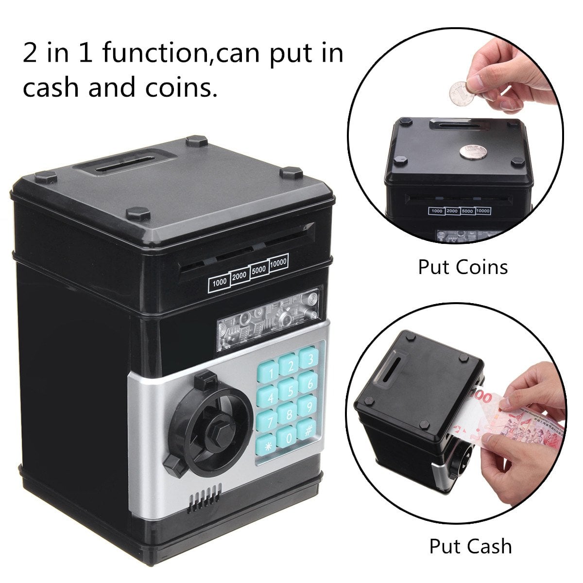 - Κρατήστε ασφαλή τα κέρματα και τα χαρτονομίσματά σας, στον πρωτότυπο κουμπαρά χρηματοκιβώτιο.