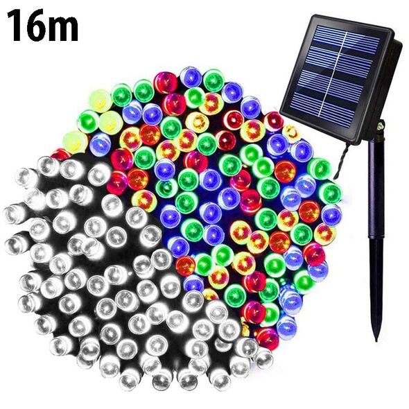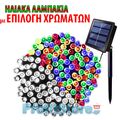 Ηλιακά Λαμπάκια με Επιλογή Χρωμάτων 16m Χριστουγεννιάτικα RGB Πολύχρωμου & Λευκού Ψυχρού - Φωτάκια 200 LED Εξωτερικού Χώρου με Φωτοβολταϊκό Πάνελ