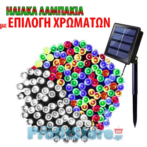 Ηλιακά Λαμπάκια με Επιλογή Χρωμάτων 16m Χριστουγεννιάτικα RGB Πολύχρωμου & Λευκού Ψυχρού - Φωτάκια 200 LED Εξωτερικού Χώρου με Φωτοβολταϊκό Πάνελ
