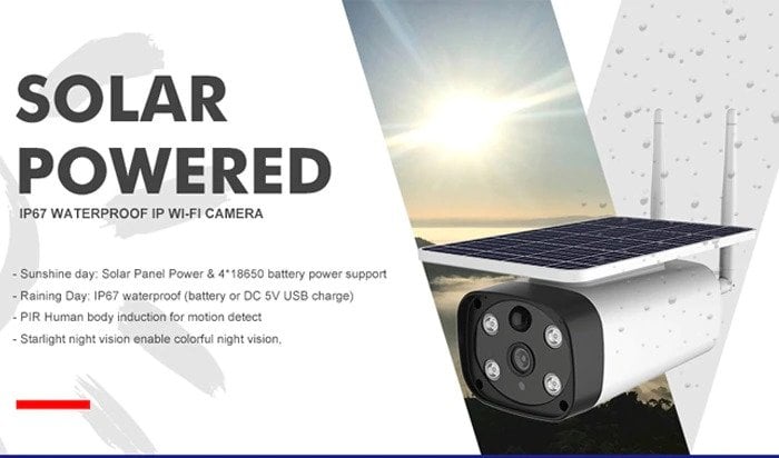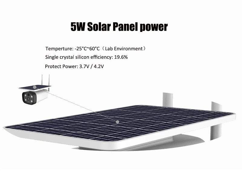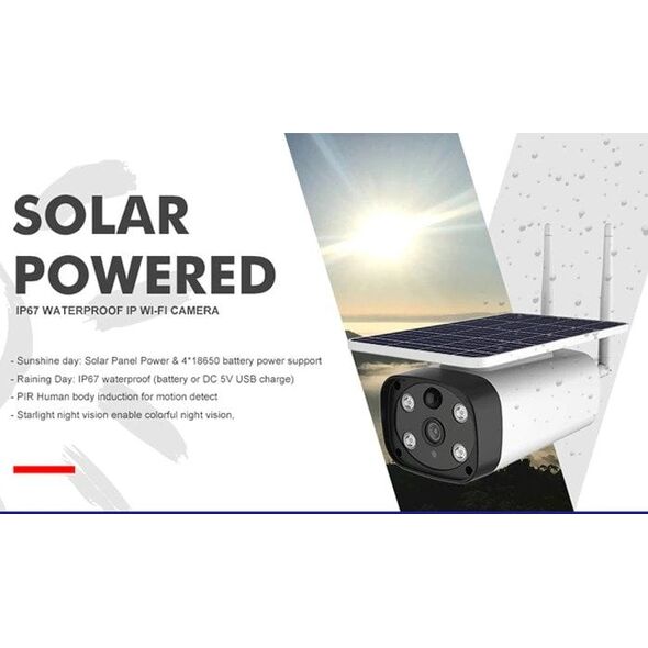 Το μεγάλο φωτοβολταϊκό πάνελ είναι υψηλής ευαισθησίας και μπορεί να φορτίσει την μπαταρία (πιο αργά) ακόμα και σε μέρες συννεφιάς. Σε θερμοκρασία πάνω από 33 Βαθμούς η κάμερα απορροφάει την θερμότητα και την μετατρέπει σε ενέργεια τροφοδοσίας της κάμερας για να μην καταναλώνει την μπαταρία!