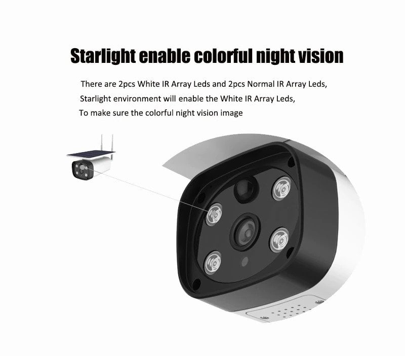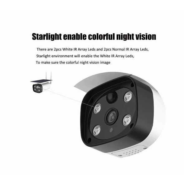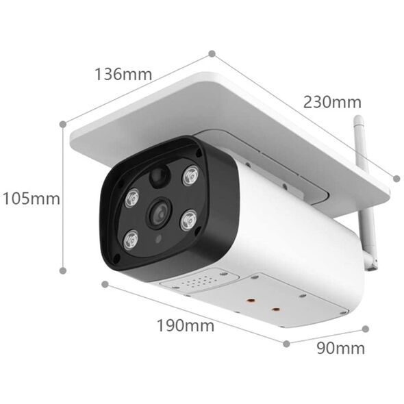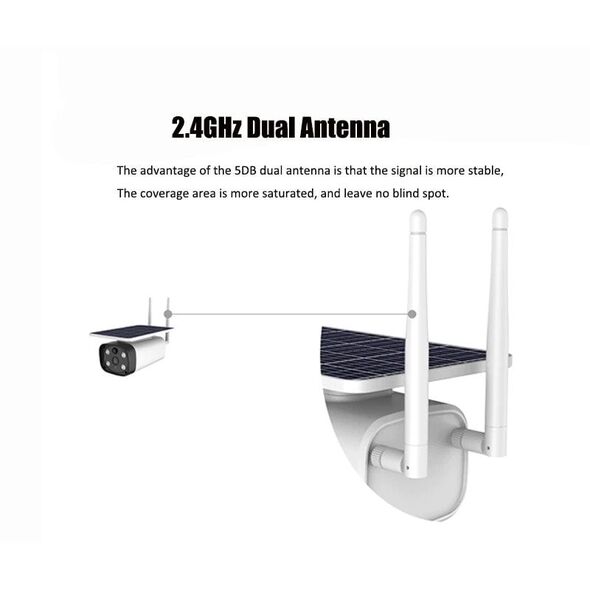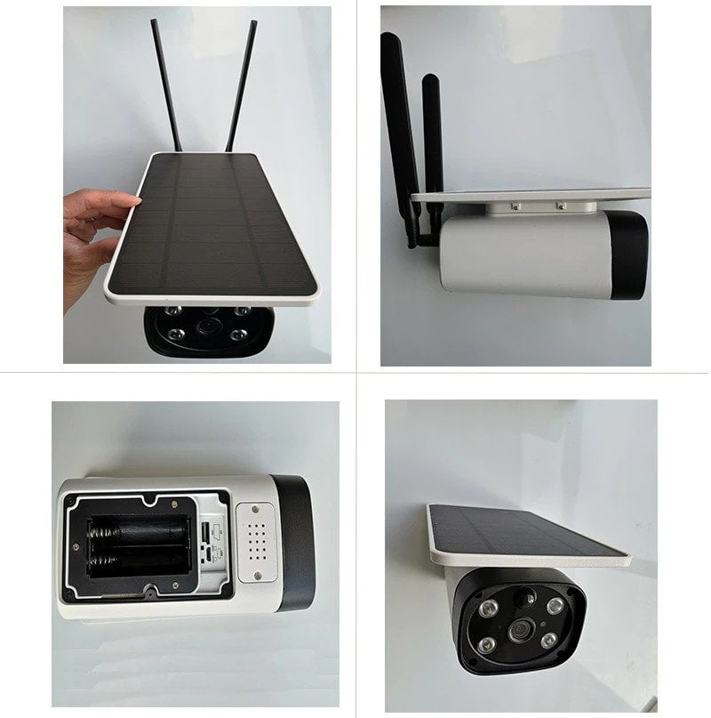 • Λειτουργεί με 4 18650 μπαταρίες  (περιλαμβάνονται) που φορτίζουν από το πάνελ. Παρόμοιες κάμερες, σε περίπτωση βλάβης της μπαταρίας χρείουν ολικής αντικατάστασης. Τώρα, σε περίπτωση βλάβης της μπαταρίας, απλά τις αλλάζετε! Επαναφορτιζόμενες από το πάνελ.