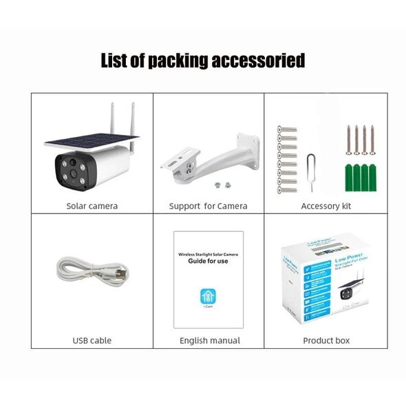 • Τροφοδοσία: 5W ηλιακό πάνελ, με υποστήριξη 5V USB θύρας για περίπου 6 ώρες πλήρης φόρτισης