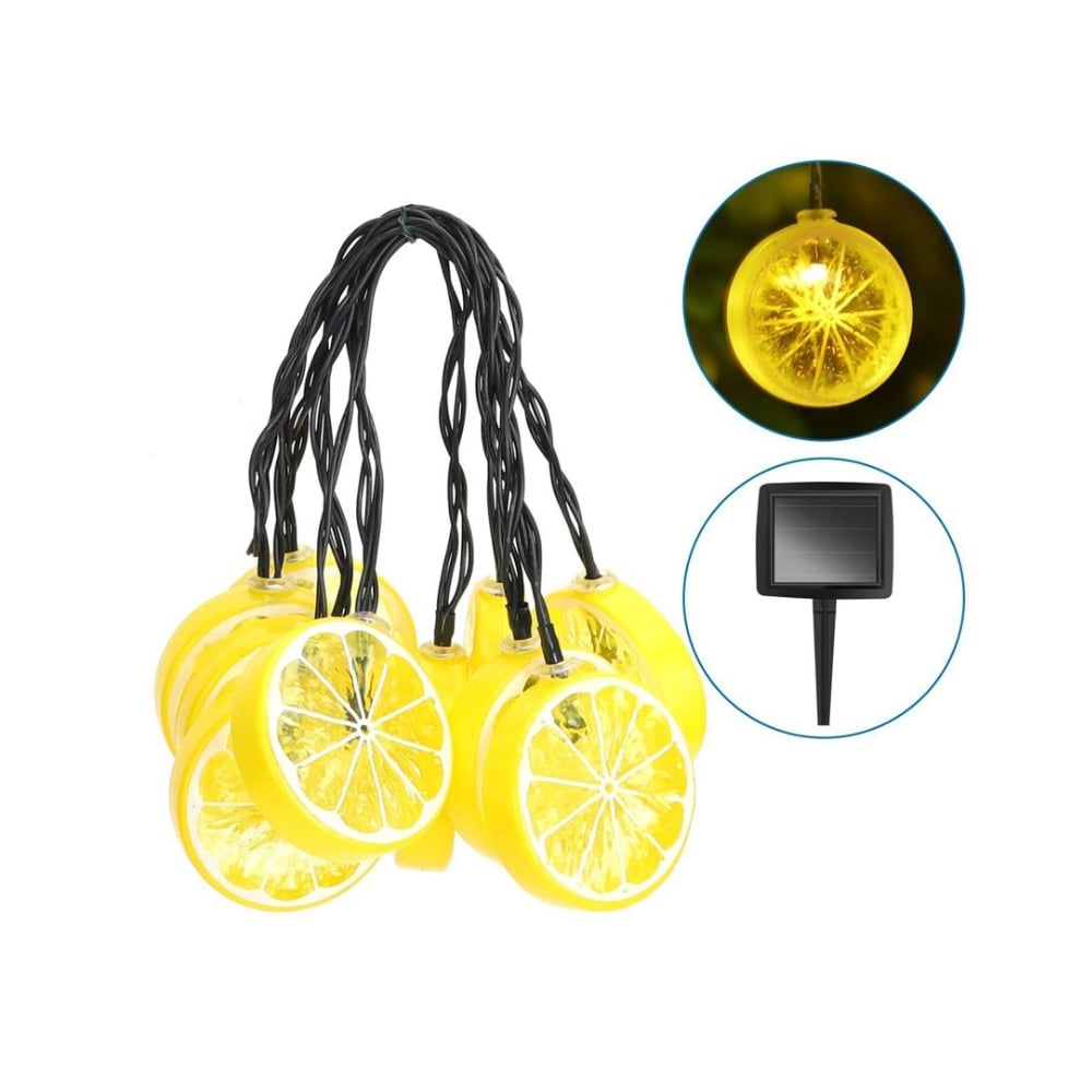 Ηλιακή Αδιάβροχη Γιρλάντα - 10 Διακοσμητικές Χριστουγεννιάτικες Λάμπες LED 3.8μ Ντίζα Με Σχέδιο Λεμόνι