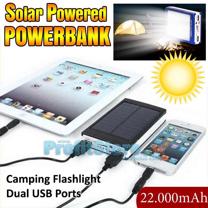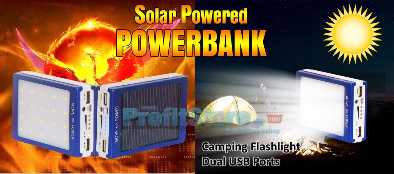 Ηλιακή Μπαταρία Φορτιστής Υψηλής Ισχύος 2,1A & Φωτιστικό LED - Solar Ηλιακό Power Bank Eboot ES22000