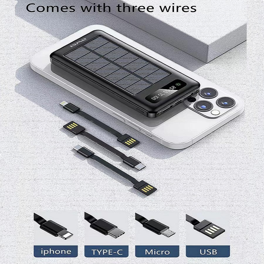 - 1 x Awei Ηλιακά Επαναφορτιζόμενο Power Bank - Μπαταρία Φορτιστής 10000mAh με Διπλό LED Φακό, LED Ένδειξη Μπαταρίας, 2 Θύρες USB & 3 Καλώδια Φόρτισης